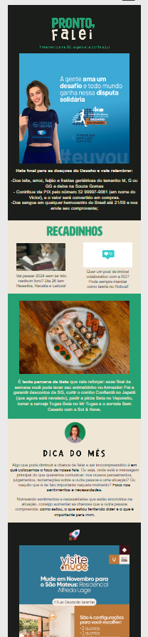 O Pronto, Falei é uma newsletter mensal da Souza Gomes exclusivamente para a equipe: corretores, aluguel e administrativo.