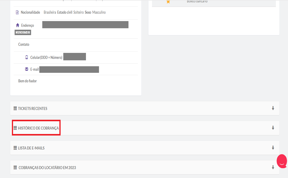 Qualquer um que precisar entender mais sobre o andamento da cobrança poderá consultar o CRM daquele inquilino clicando no nome do cliente e acessando a área de “Histórico de cobranças”. Veja detalhes no treinamento do Kenlo ou campo de busca.