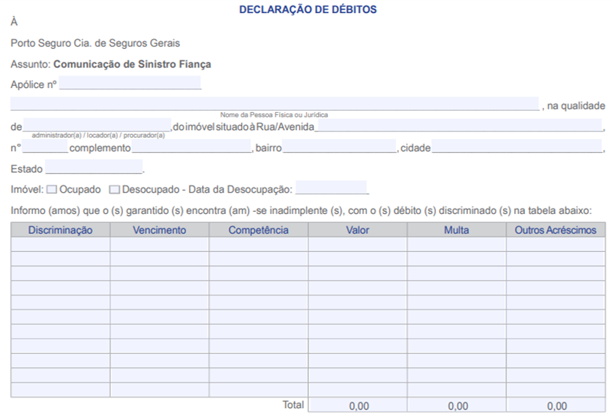 - Declaração de débitos