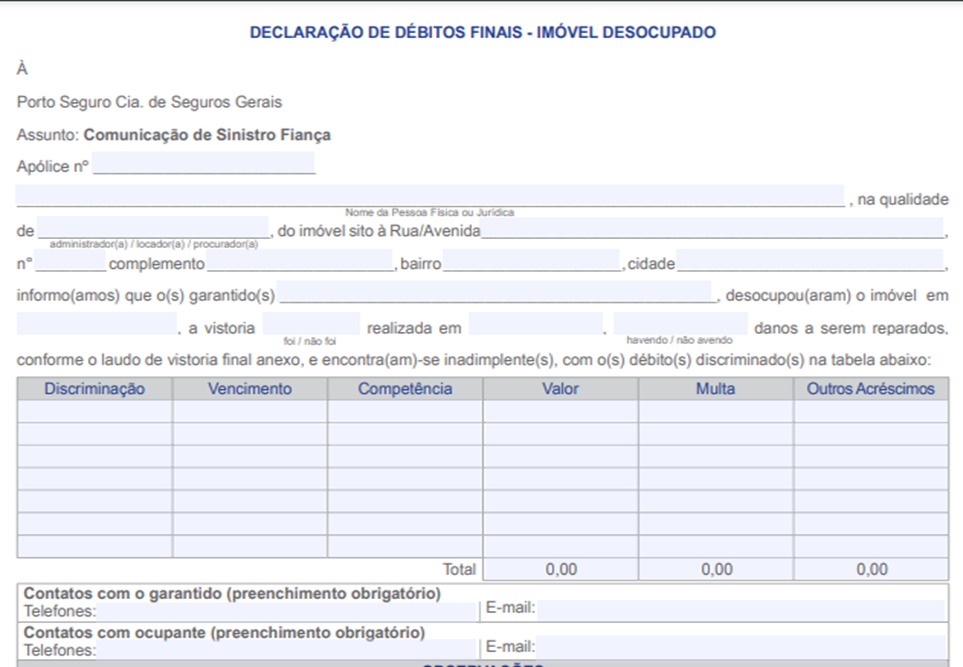 - Recibo ou boleto dos vencimentos em atraso (aluguel, IPTU, condomínio, gás canalizado)