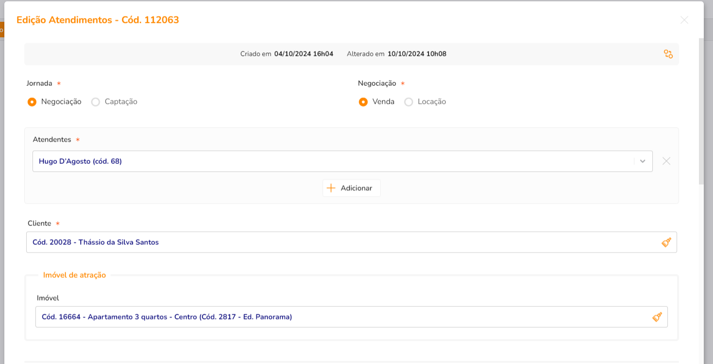No caso do cliente pedir para trocar de corretor, é preciso avisar a diretoria, que vai entrar em contato para entender a situação e trocar o atendente no sistema aqui no Atendimento na parte de Atendente: