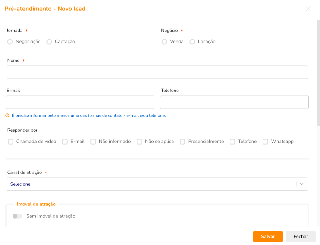 Pronto, preencha os dados do lead com o máximo de informações que conseguir. É tudo bem intuitivo e prático. Assim, o lead cai direto na roleta do plantonista da vez.