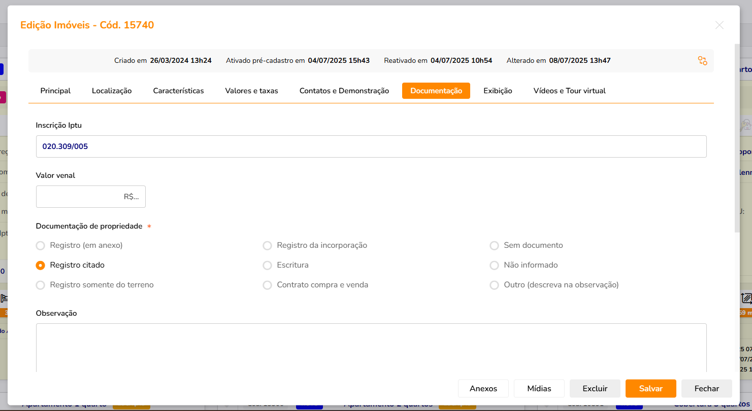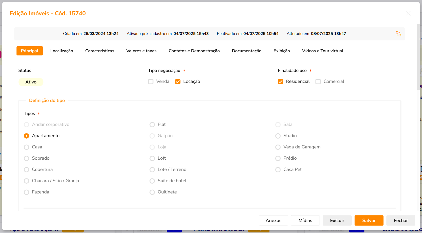 - Caso o imóvel venha para ser trabalhado internamento, assim como uma ativação para lançamento de proposta, é necessário desmarcar todos os campos.