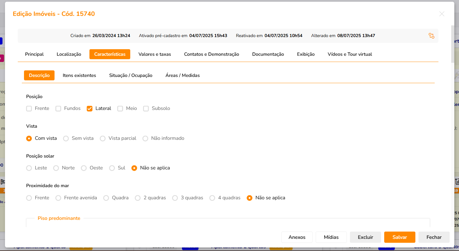 Aqui vamos verificar todos os itens que existem no apartamento, assim como a descrição. É de suma importância que o cuidado seja redobrado nesta parte, já que influencia diretamente nos filtros de pesquisa que temos no site.