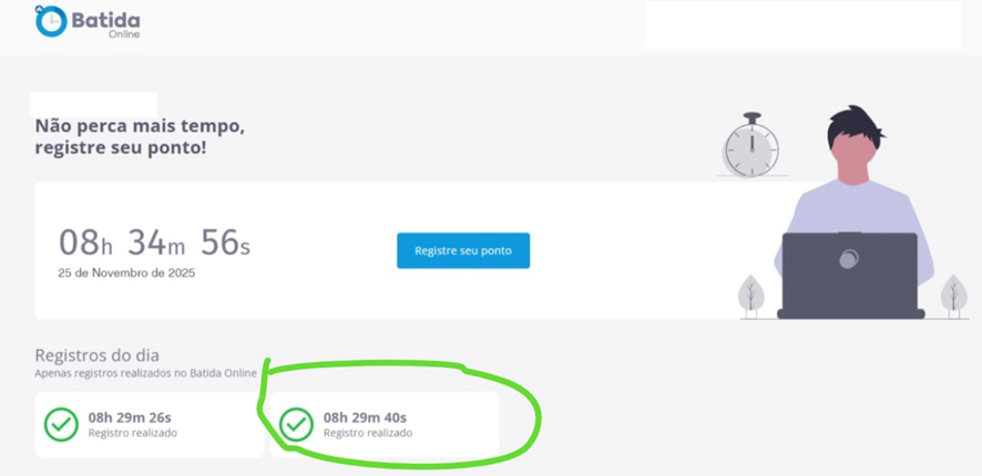 - O ponto deve ser registrado exatamente no horário de início do trabalho. Registrar antes do horário gera tempo extra que não corresponde à jornada real.