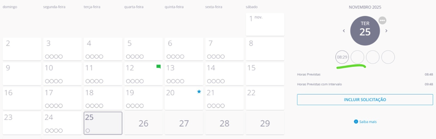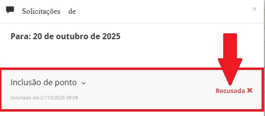 Quando houver mais de um status no mesmo dia, prevalecerá o registro aprovado (verde) ou recusado (vermelho).