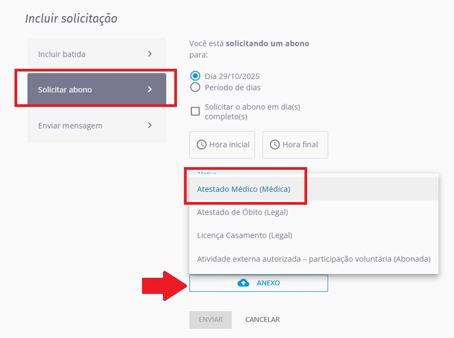 - Quando houver afastamento indicado pelo médico, solicite abono na plataforma, anexando o atestado médico.
